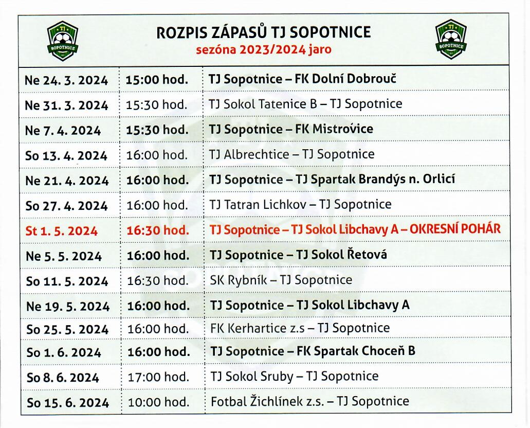 Úvod > Aktuality > Rozpis fotbalových zápasů Okresního přeboru jaro 2024